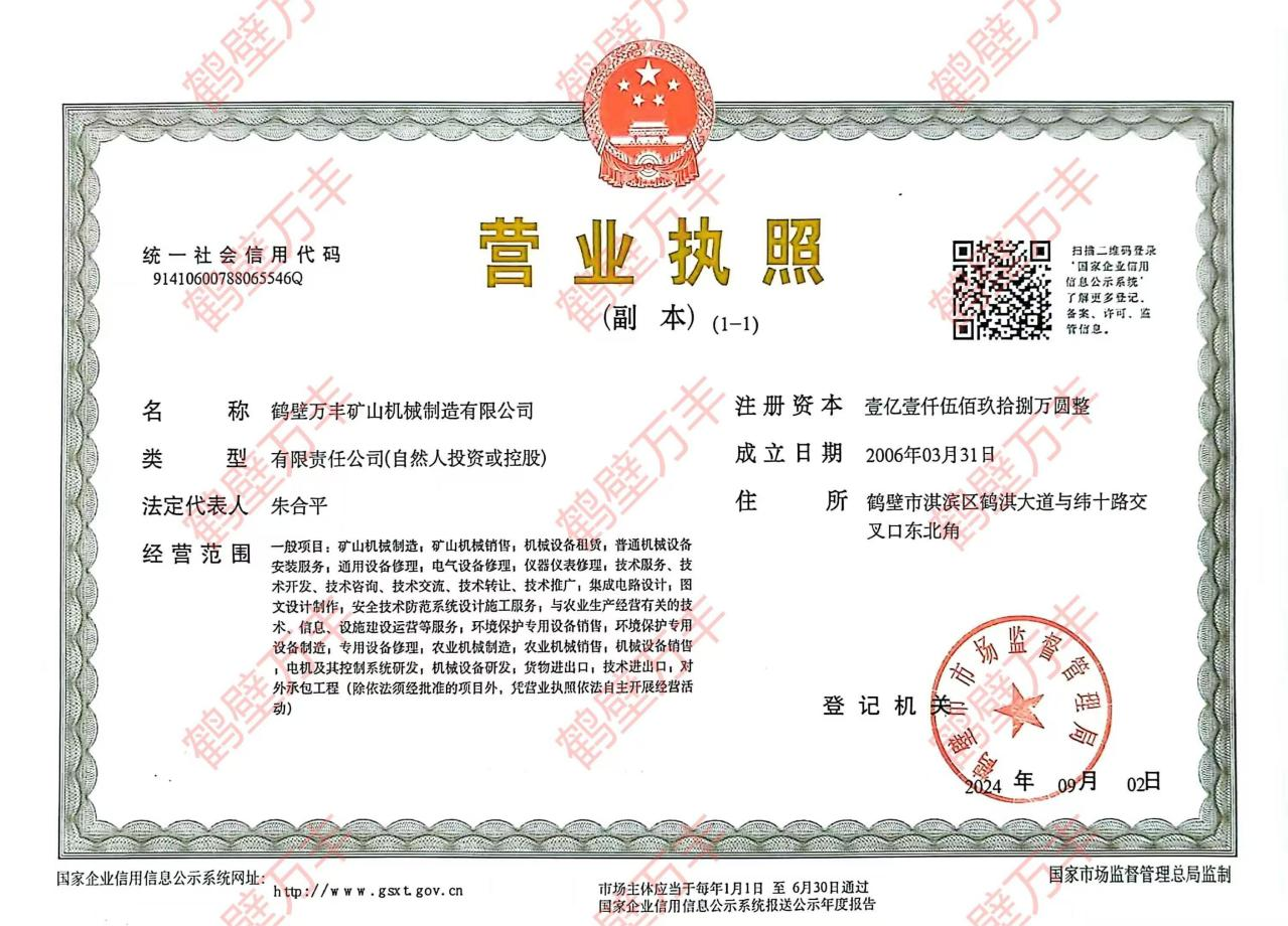 鹤壁万丰矿山机械制造有限公司总部坐落于河南省鹤壁市城乡一体化示范区、在山城区设有分厂区,总占地面积130000余平方米,拥有现代化的生产、检测设备200多台套,总资产4.7亿多元,现有员工300余人,是一家集研发、生产、销售、服务于一体的现代化机械制造企业。